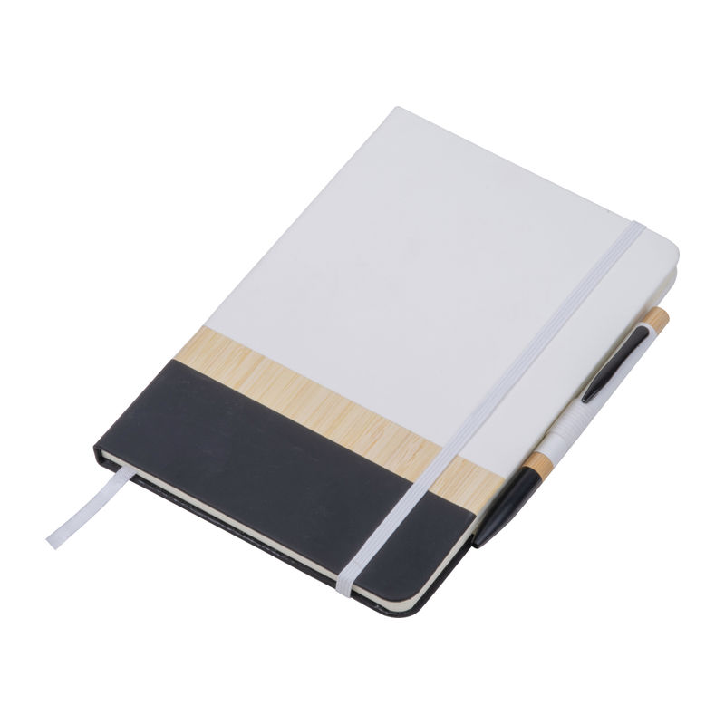 Zápisník A5 s propiskou. Zápisník je vyrobený z recyklovaného papíru se 160 linkovanými stranami, bambusu a PU. Propiska ve stejném dizajnu, z hliníku a bambusu. Rozměry: 14,5 x 1,5 x 21 cm
