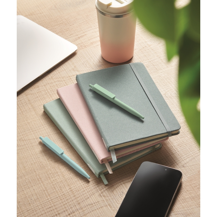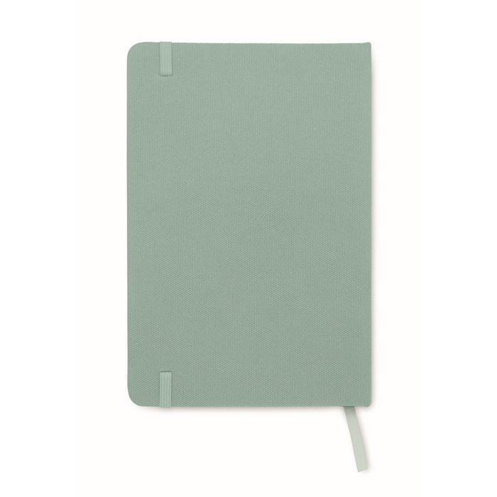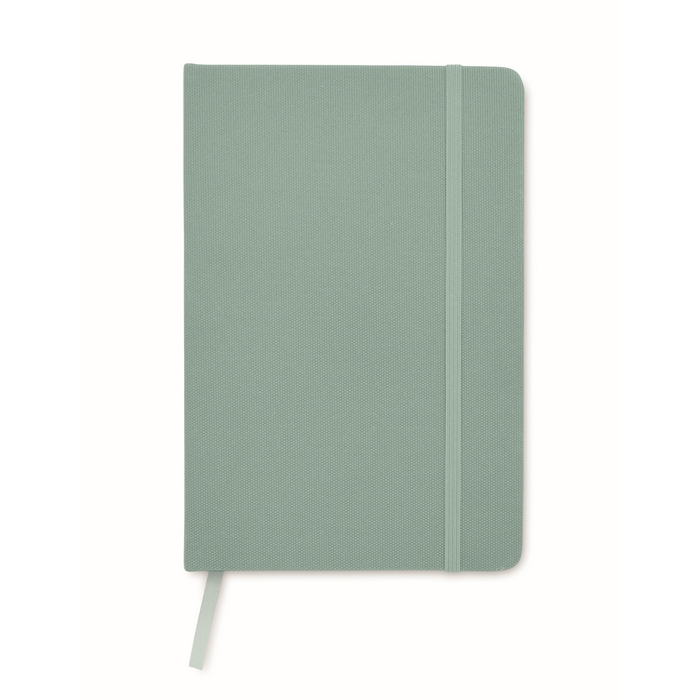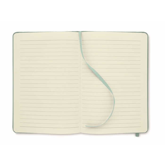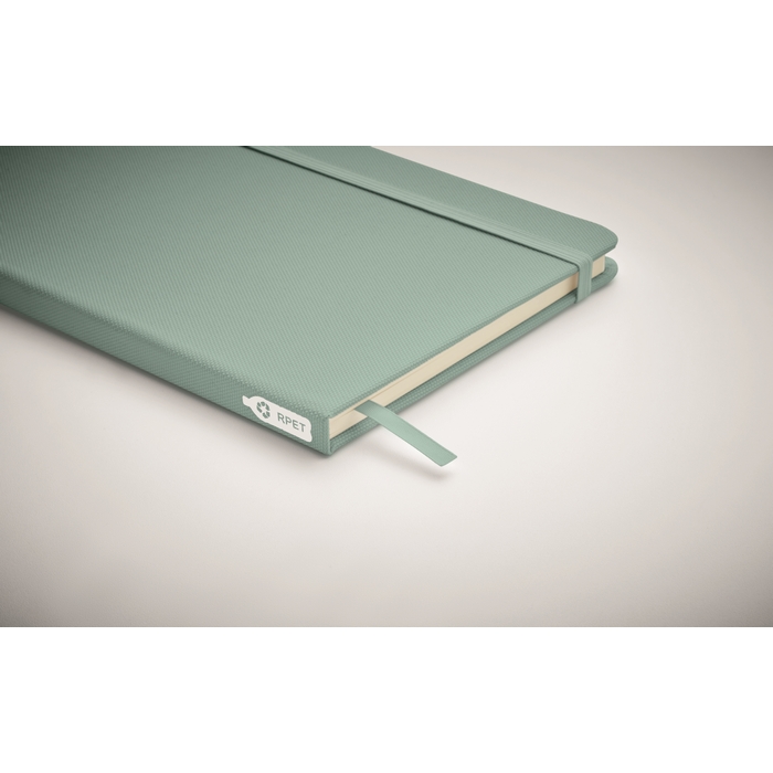 Zápisník A5 s tvrdou obálkou z 600D RPETu. 160 linkovaných stránek z recyklovaného papíru (80 listů). Zavírací gumička a a záložka v ladící barvě. FSC®-certified | FSC MIX CREDIT, P7.1, FSC-C213206 Rozměry: 21 x 14 x 1.3 cm