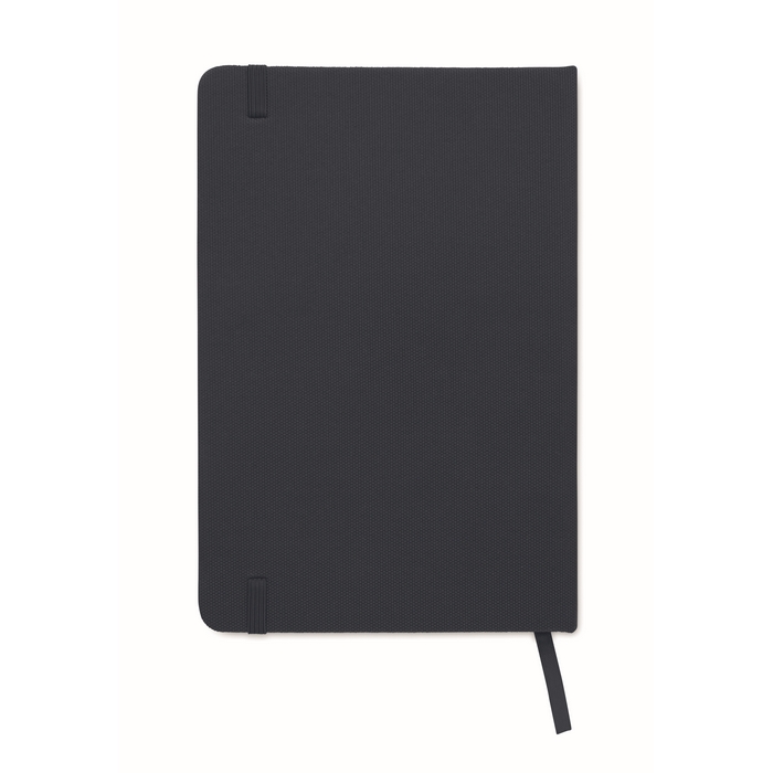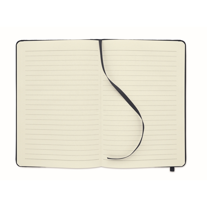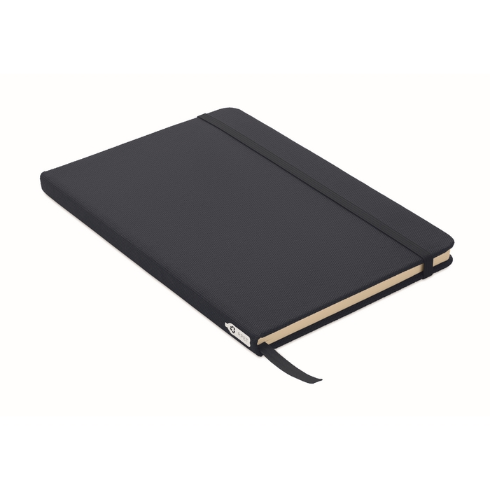 Zápisník A5 s tvrdou obálkou z 600D RPETu. 160 linkovaných stránek z recyklovaného papíru (80 listů). Zavírací gumička a a záložka v ladící barvě. FSC®-certified | FSC MIX CREDIT, P7.1, FSC-C213206 Rozměry: 21 x 14 x 1.3 cm