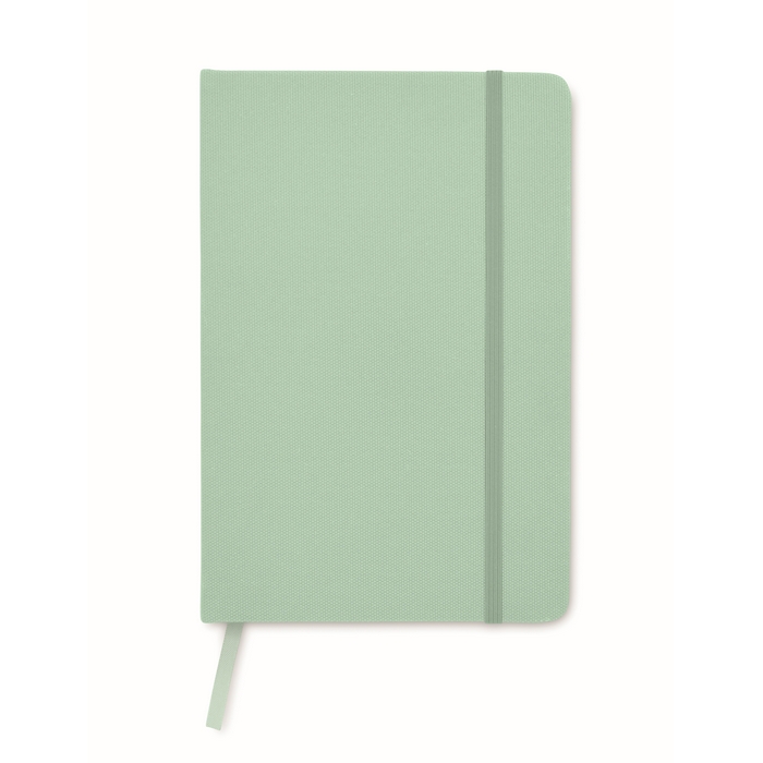 Zápisník A5 s tvrdou obálkou z 600D RPETu. 160 linkovaných stránek z recyklovaného papíru (80 listů). Zavírací gumička a a záložka v ladící barvě. FSC®-certified | FSC MIX CREDIT, P7.1, FSC-C213206 Rozměry: 21 x 14 x 1.3 cm