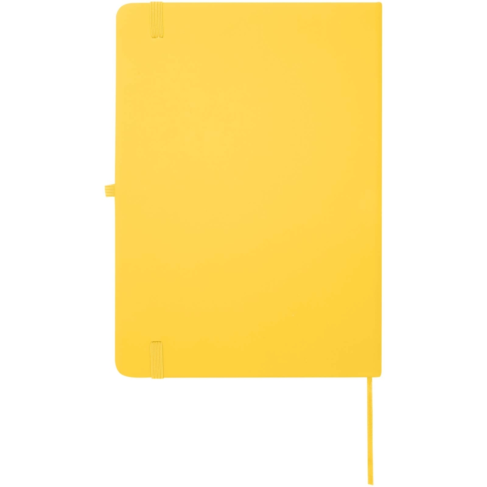 Zápisník A5 s pevnou obálkou a zaoblenými rohy je nejen skvělým pomocníkem v kanceláři, ale také ideální příležitostí k propagaci vaší značky. Lepenkový zápisník má na dotek měkkou obálku a 80 linkovaných listů v krémové barvě o gramáži 70 g/m2, což je ideální pro zapisování rychlých nápadů nebo podrobných poznámek. Zápisník má poutko na pero, elastický uzávěr, záložku a rozšiřitelnou kapsu. Rozměry: 21 x 14,5 cm