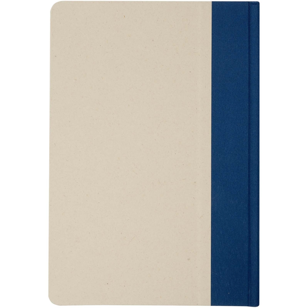 Zápisník s pevnou vazbou A5 se zaoblenými rohy a 80 linkovanými listy s gramáži papíru 90 g/m2. Obálka je vyrobena z materiálu RPET a papíru z cukrové třtiny. Rozměry: 21 x 14,5 cm