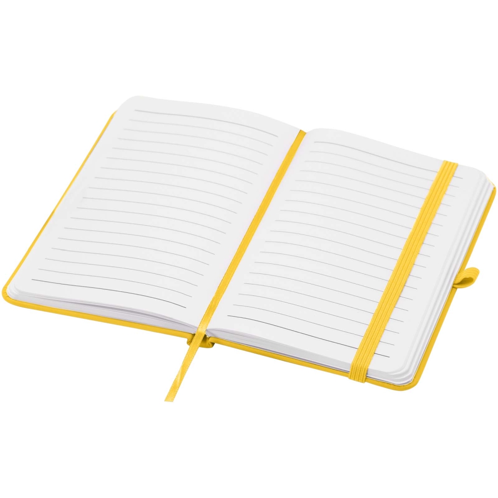Zápisník A6 s pevnou obálkou a zaoblenými rohy je nejen skvělým pomocníkem v kanceláři, ale také ideální příležitostí k propagaci vaší značky. Lepenkový zápisník má na dotek měkkou obálku a 80 linkovaných listů v krémové barvě o gramáži 70 g/m2, což je ideální pro zapisování rychlých nápadů nebo podrobných poznámek. Zápisník má poutko na pero, elastický uzávěr, záložku a rozšiřitelnou kapsu. Rozměry: 14 x 8,9 cm