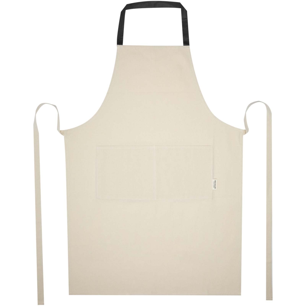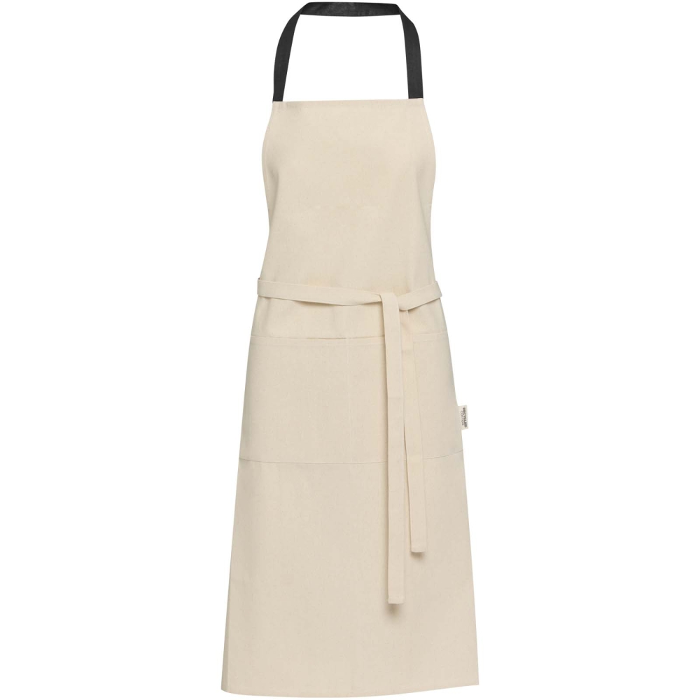 Zástěra je vyrobena ze 100% recyklované bavlny s gramáží 200 g/m2. Tato zástěra v přírodní bavlněné barvě s krčním úvazem v kontrastní barvě ochrání vaše oblečení při vaření. Zástěra se dvěma kapsami vedle sebe o celkové velikosti 45 × 20 cm a 1 metr dlouhým zádovým úvazem zajišťuje praktičnost i styl v kuchyni. Rozměry: 100 x 70 cm