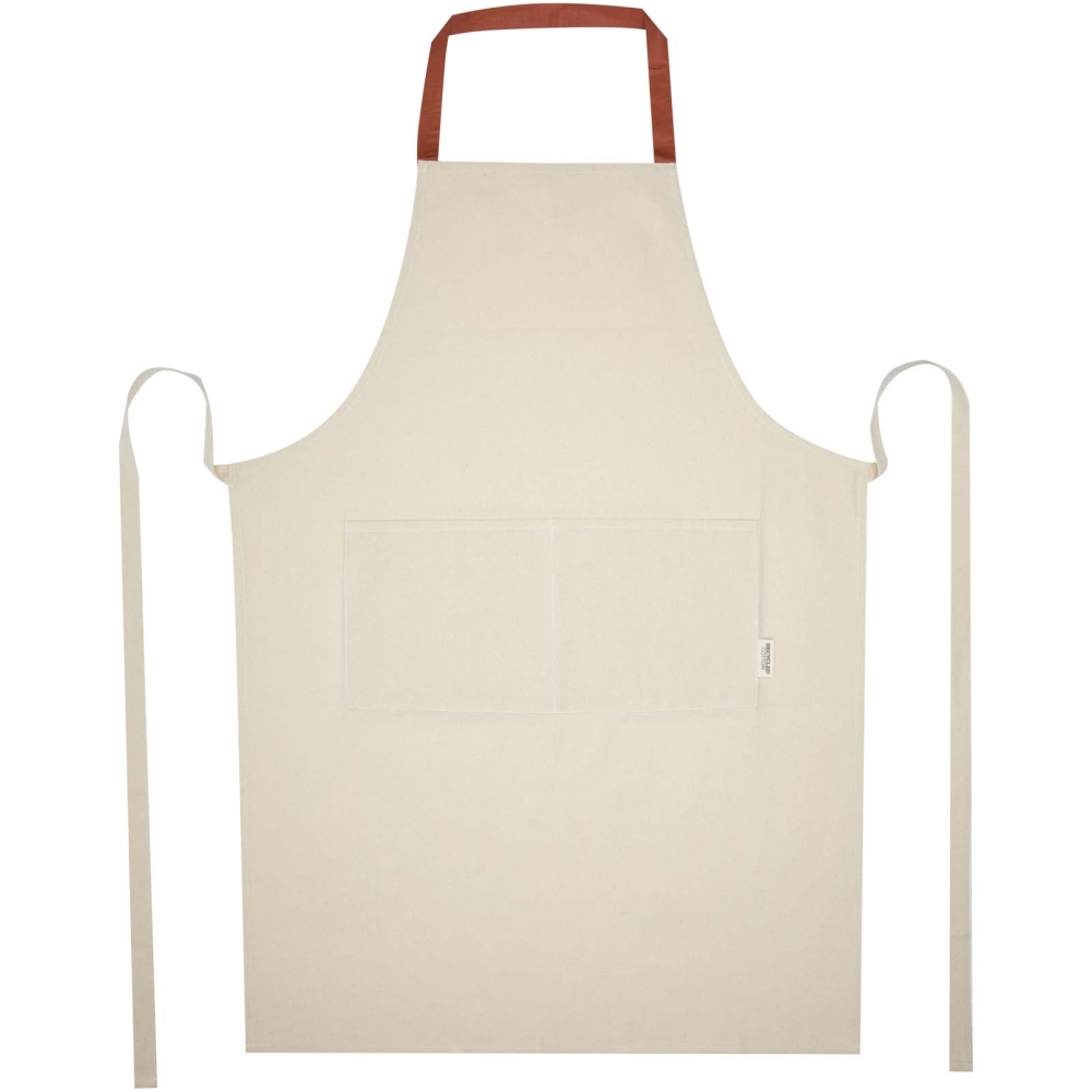 Zástěra je vyrobena ze 100% recyklované bavlny s gramáží 200 g/m2. Tato zástěra v přírodní bavlněné barvě s krčním úvazem v kontrastní barvě ochrání vaše oblečení při vaření. Zástěra se dvěma kapsami vedle sebe o celkové velikosti 45 × 20 cm a 1 metr dlouhým zádovým úvazem zajišťuje praktičnost i styl v kuchyni. Rozměry: 100 x 70 cm